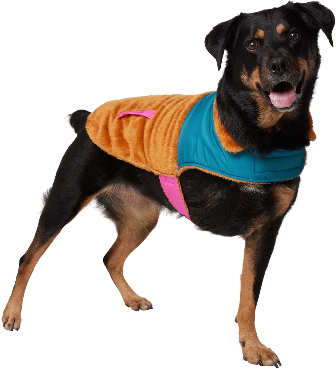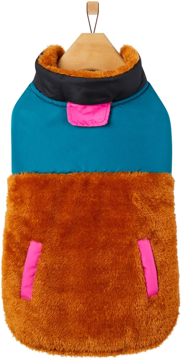 Frisco Medium Weight Retro Colorblock Mixed Media Dog & Cat Coat, Tan, X-Large