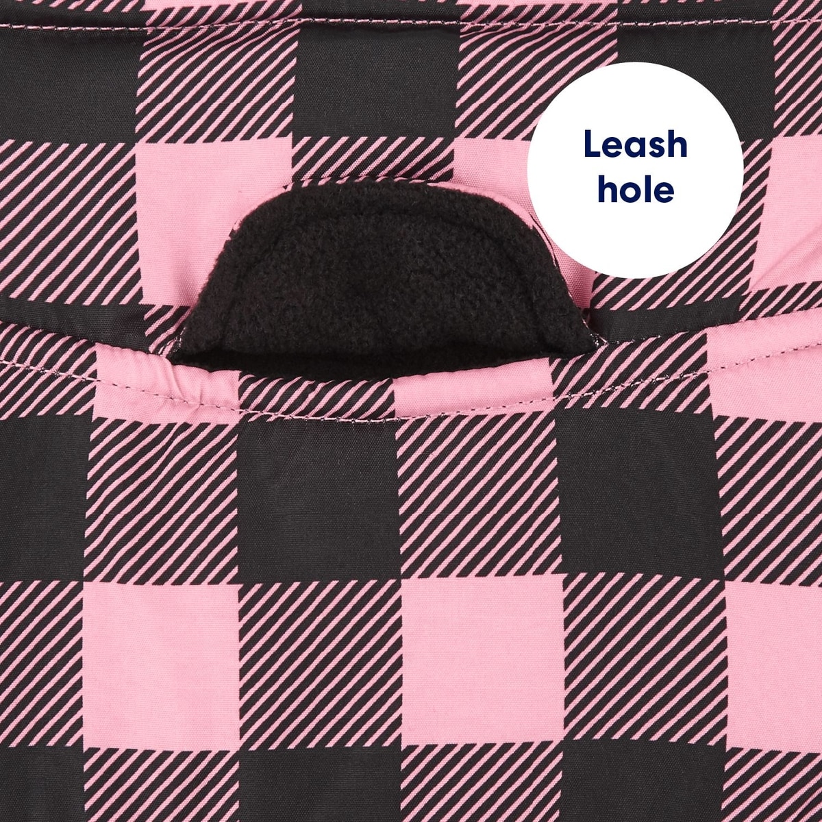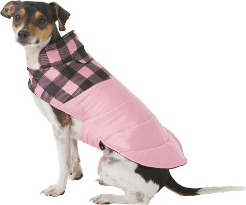 Frisco Mediumweight Boulder Plaid Insulated Dog & Cat Puffer Coat, Pink, Small