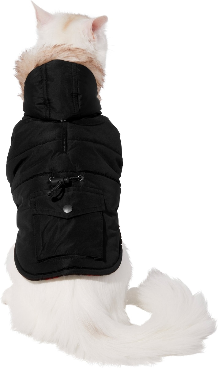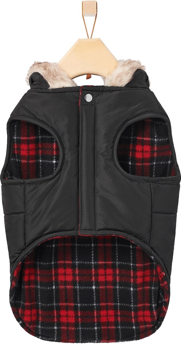 Frisco Mid-Heavyweight Cinching Insulated Dog & Cat Parka, Black/Red Plaid, Small