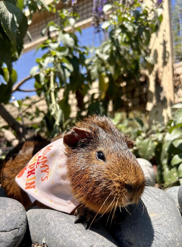 I recently got this cute little bandana, and I couldn't be happier with the quality and design. The bandana is made from a soft yet durable fabric that feels gentle against my pet's skin while withstanding all his playful activities. The vibrant colors and adorable patterns add a touch of style, making my guinea pig look even more charming. It fits perfectly thanks to its adjustable ties, ensuring comfort for pets of various sizes. Overall, this bandana is a fantastic addition to my pet's wardrobe, combining style, comfort, and functionality in one delightful accessory.