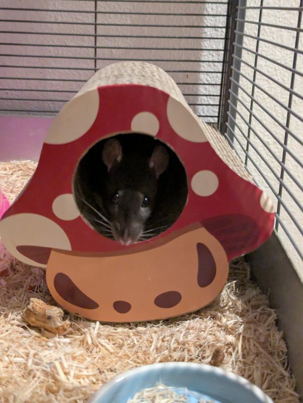Although they typically love cardboard toys, our ratty girls totally ignored this one. At least it looks cute in their enclosure?