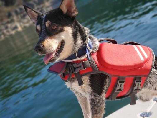 The Frisco Neoprene Dog Life Jacket features a D-ring on the back that allows you to attach a leash when necessary.
