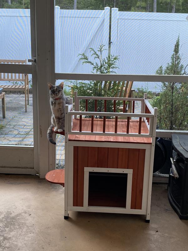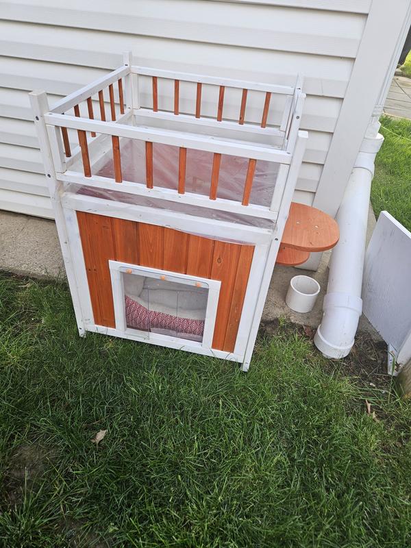 Frisco Outdoor Wooden Cat House with Elevated Balcony Steps, Medium