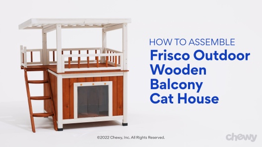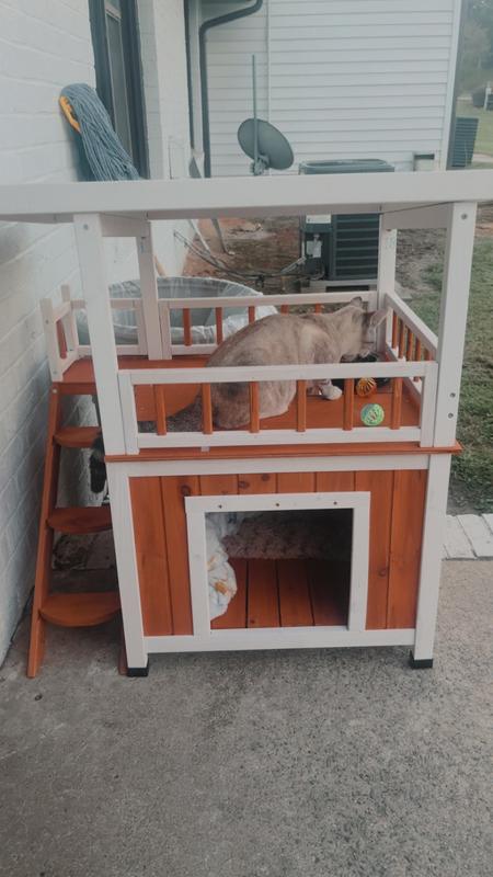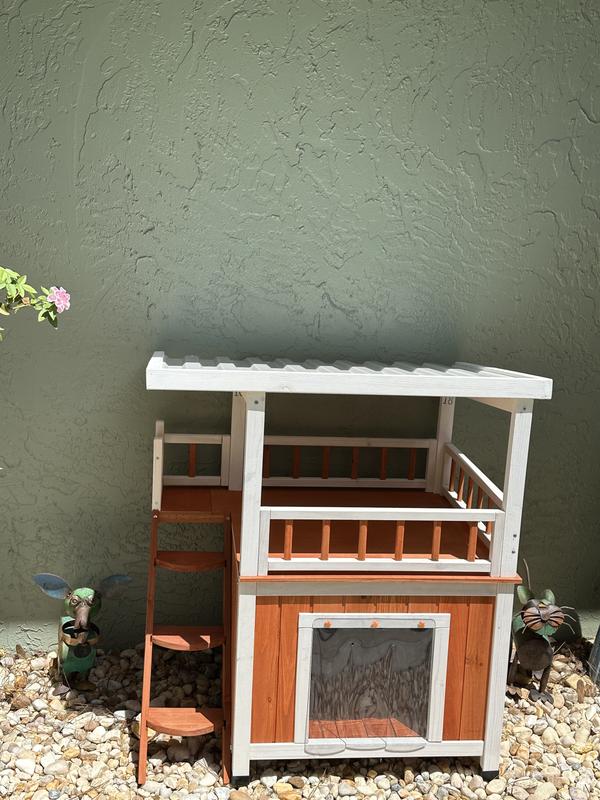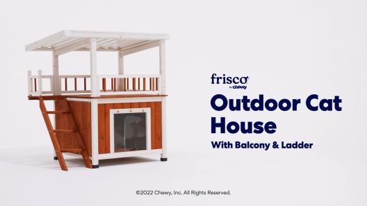 Frisco Outdoor Wooden Cat House with Balcony & Step Ladder, Brown