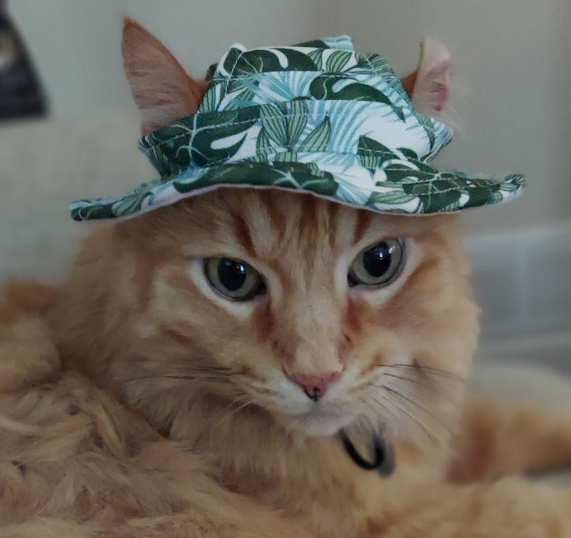 Frisco Palm Leaf Short Brimmed Bucket Dog & Cat Hat, Green, X-Small/Small