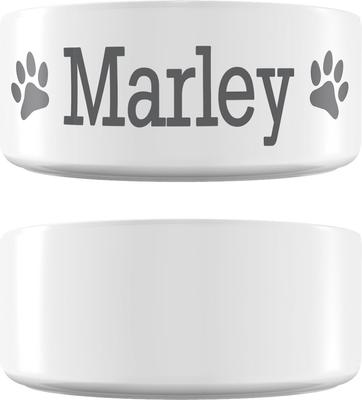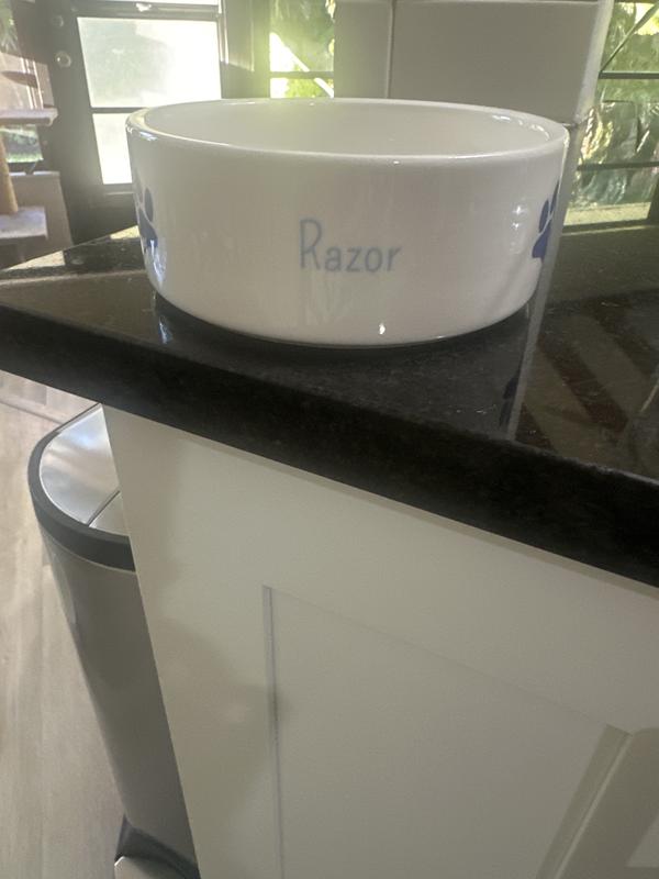 - Personalized pet bowl features paw print design and is double-glazed for a premium look and durability.