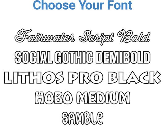 - Personalizable design allows you to add a single line of text up to 13 characters long in one of five fonts.