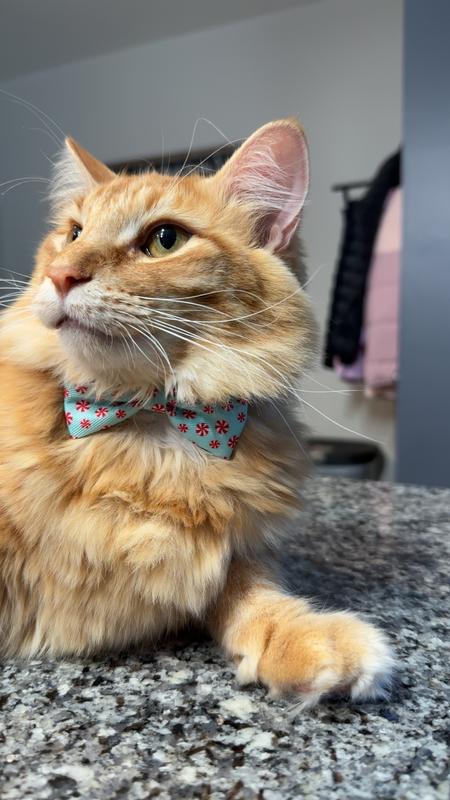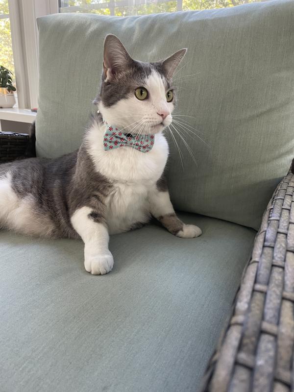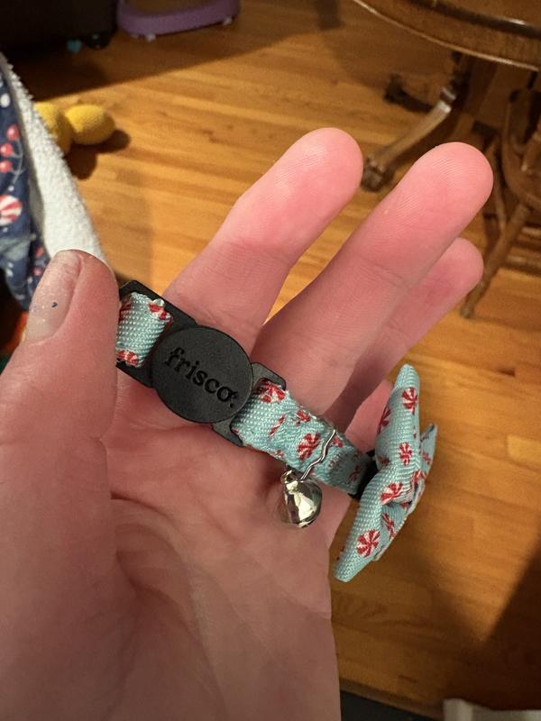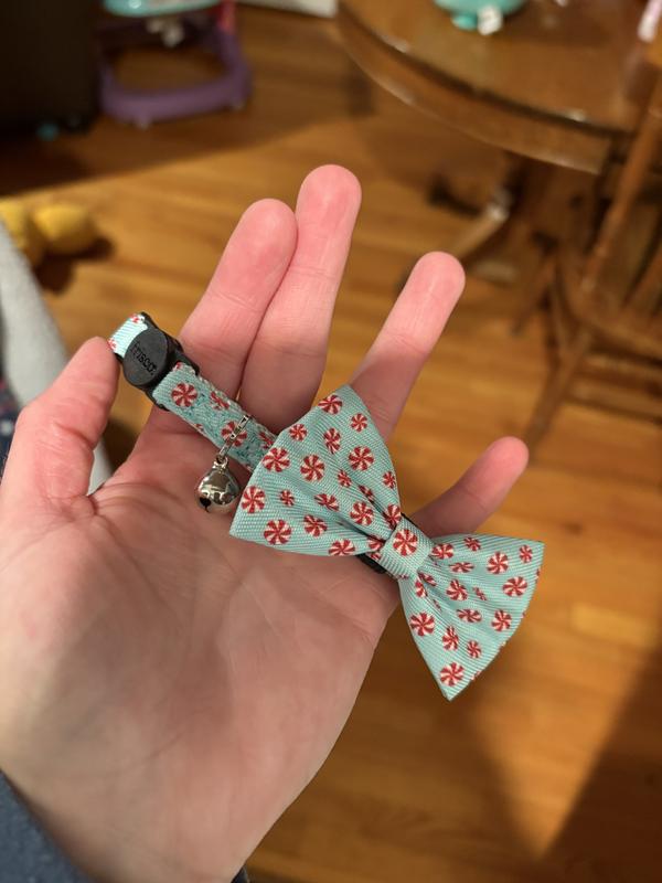 Frisco Christmas Peppermint Print Breakaway Cat Collar with Bell & Removable Bow, 8 to 12-in neck, 3/8-in wide