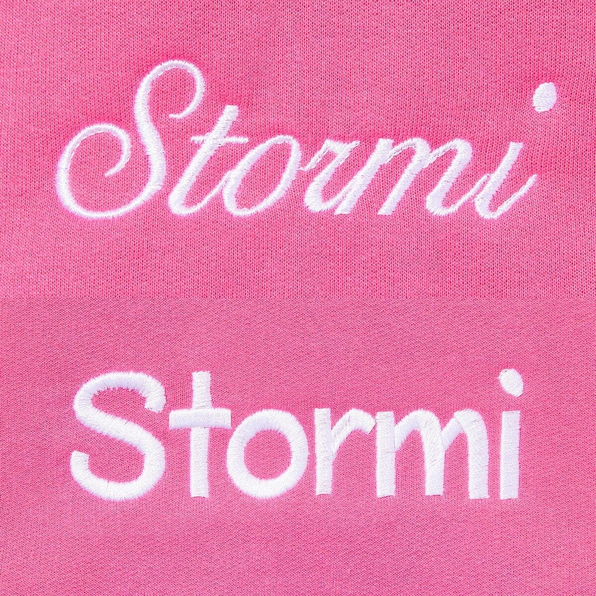 The embroidered name will be just above the pocket of the hoodie.