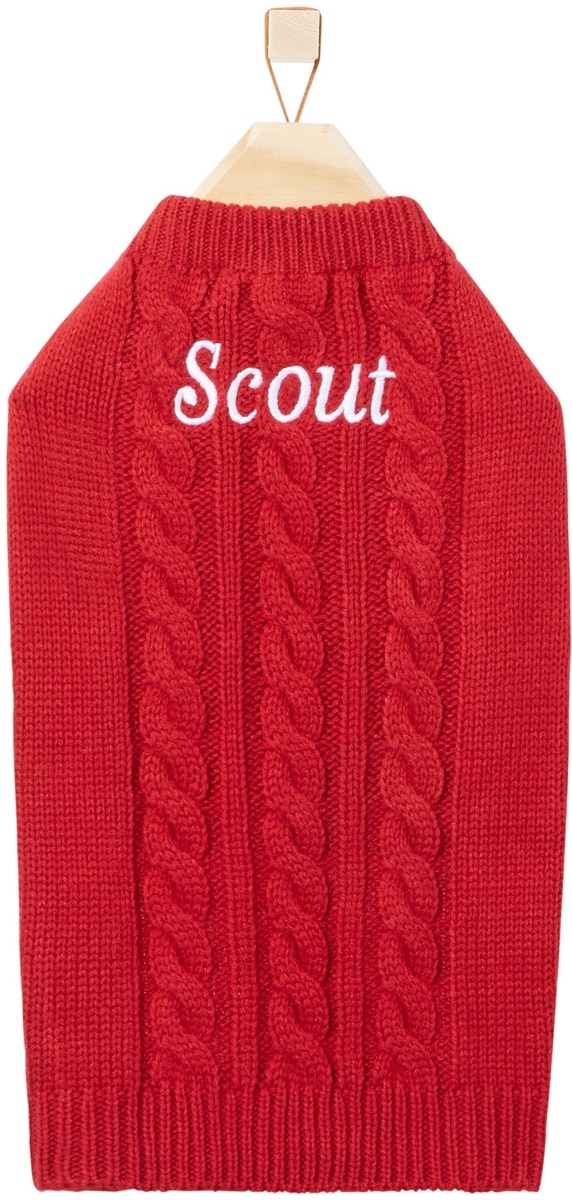 Frisco Personalized Dog & Cat Cable Knitted Sweater, X-Large, Red