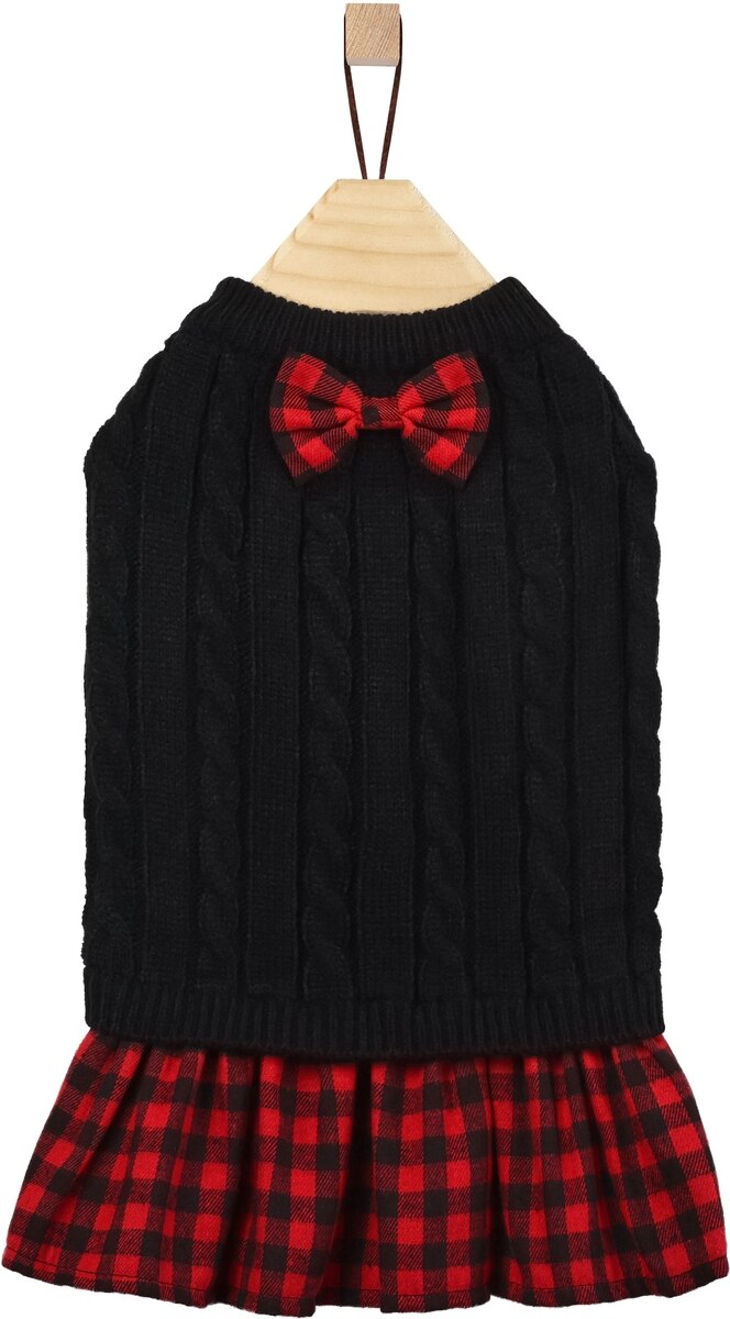 Frisco Plaid Cable Knit Dog & Cat Sweater Dress, Red Plaid, Large