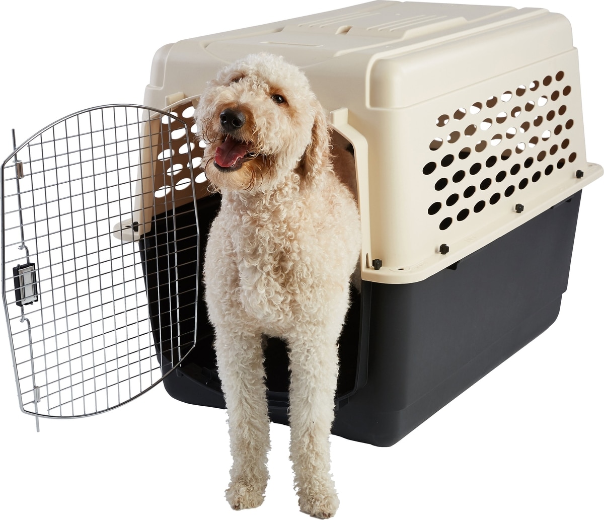• From Frisco by Chewy. The ideal crate for any trip with your pet, this plastic kennel is designed for both safety and comfort. It comes in several sizes so you can find the perfect fit for your pet.