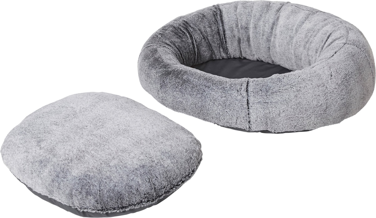 Frisco Plush High Low Bolster Cuddler Cat & Dog Bed, Gray, Large