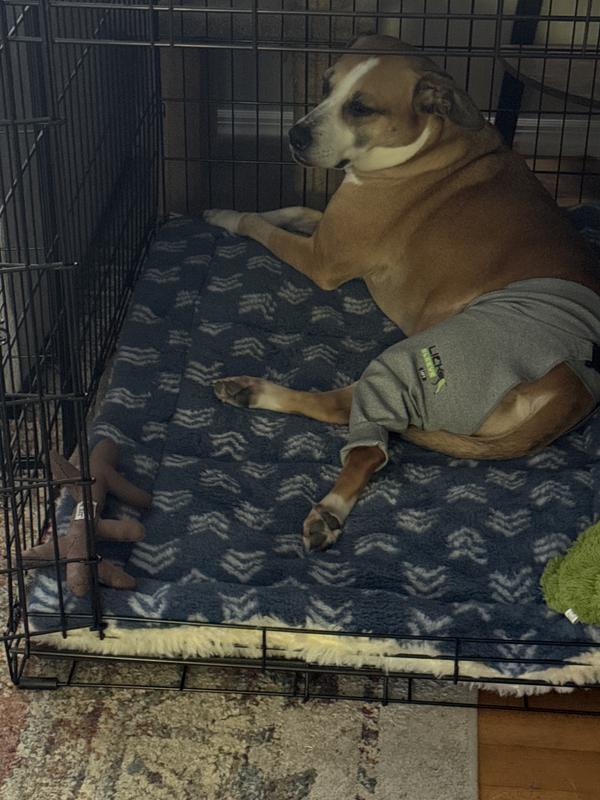 - DealMidWest Quiet Time Fleece Reversible Dog Crate Mat, Blue Paw Print, 36-in$24.19 Chewy Price$48.99 List PricePromo, New Customers Only: Spend $49+, Get $20 eGift Card +1 deal