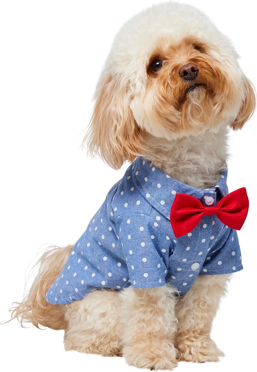 Frisco Polka Dot Chambray Dog & Cat Button Up Shirt, Medium