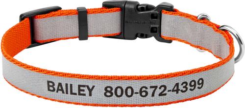 Frisco Polyester Personalized Reflective Dog Collar, Orange, S - Neck: 10-14-in, Width: 5/8-in