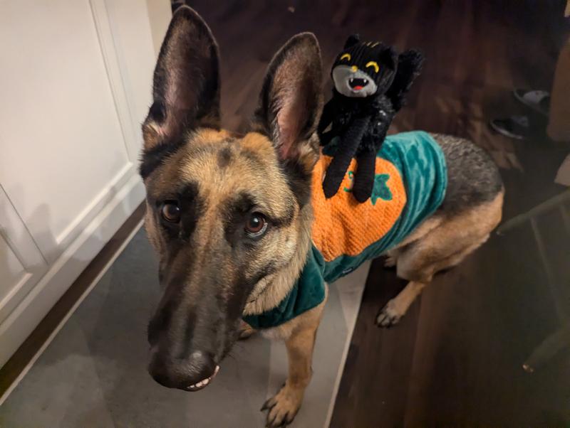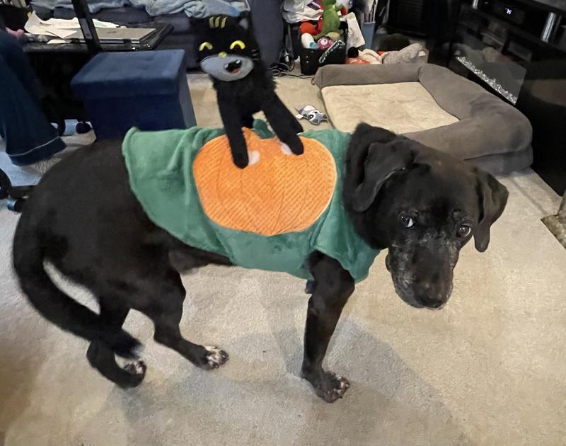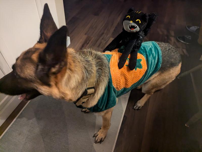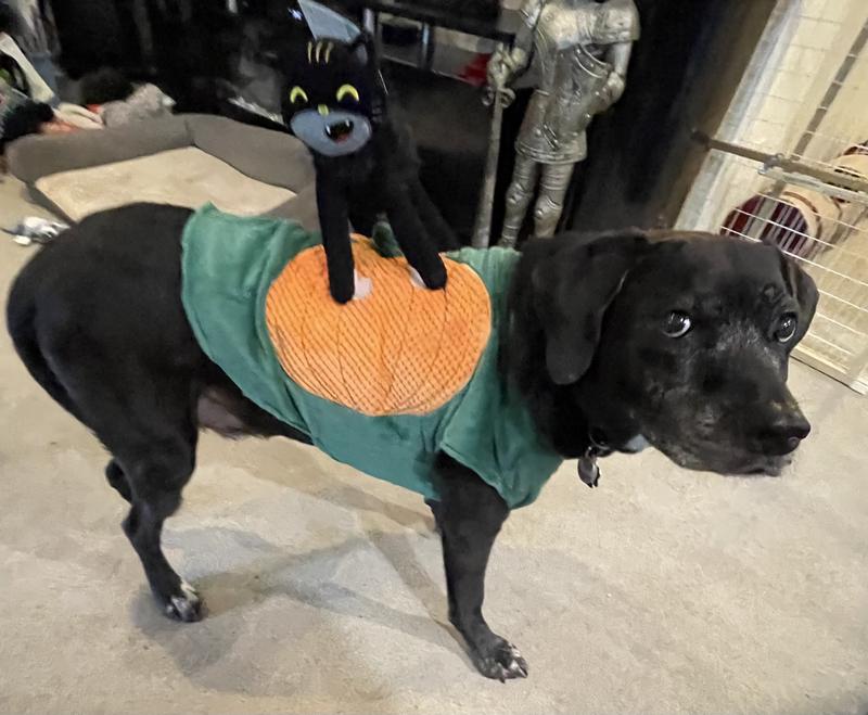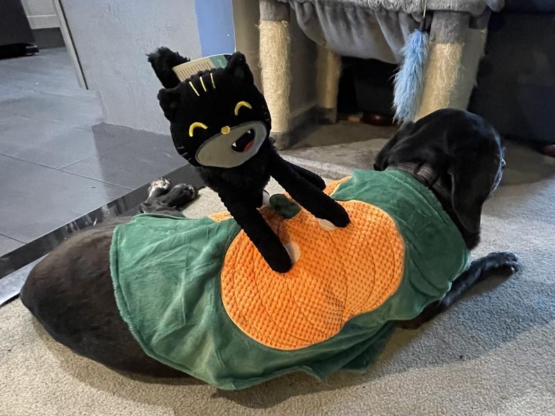 Frisco Pumpkin Cat Ride-On Dog Costume with detachable Plush Toy, Small