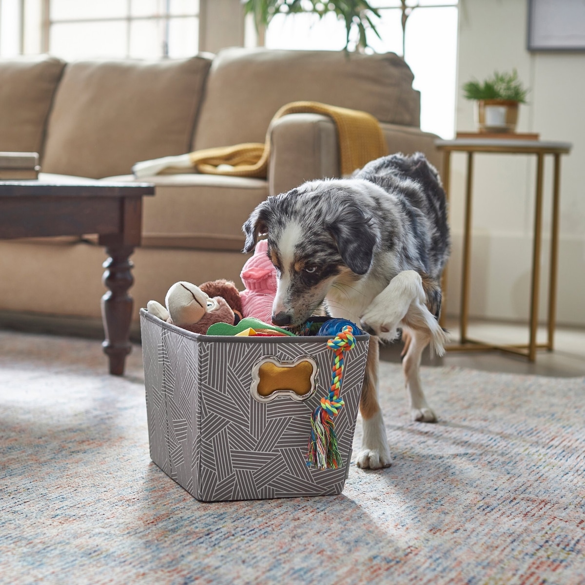 Frisco Rectangle Collapsible Pet Toy Storage Bin, Gray Basket Weave