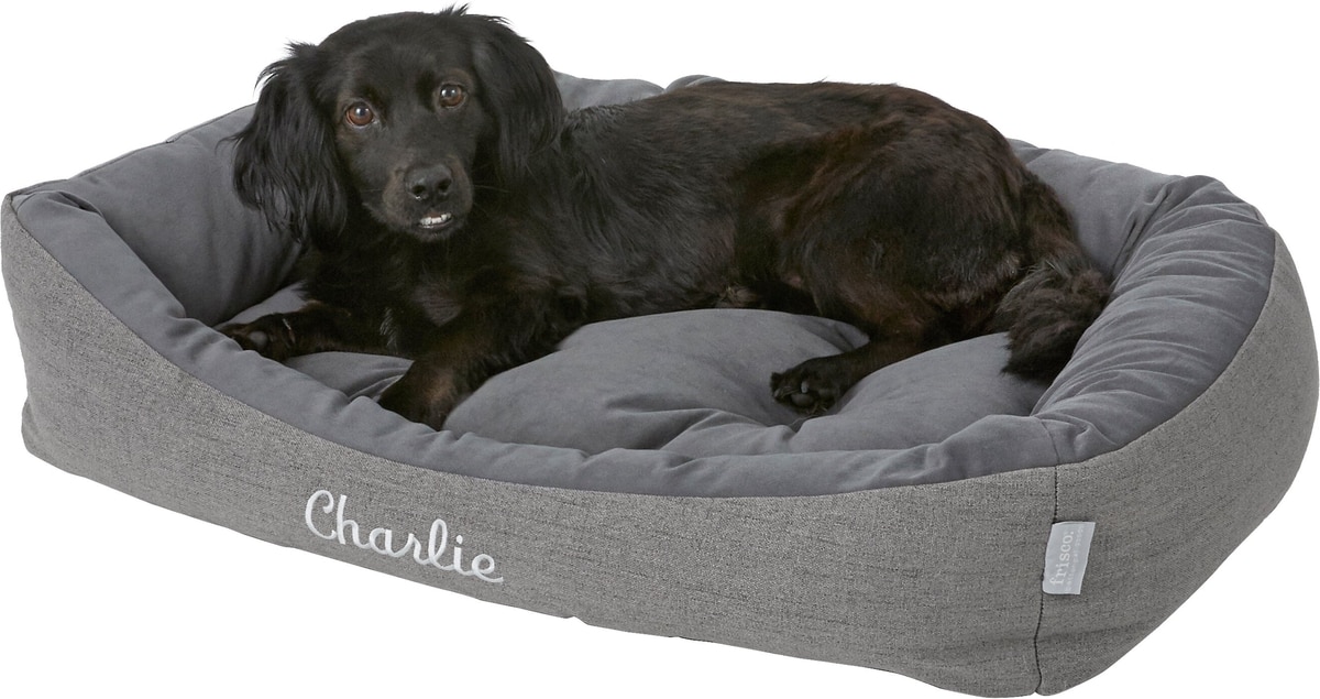 Frisco Rectangular Personalized Bolster Dog Bed w/Removable Cover, Dark Gray, Large