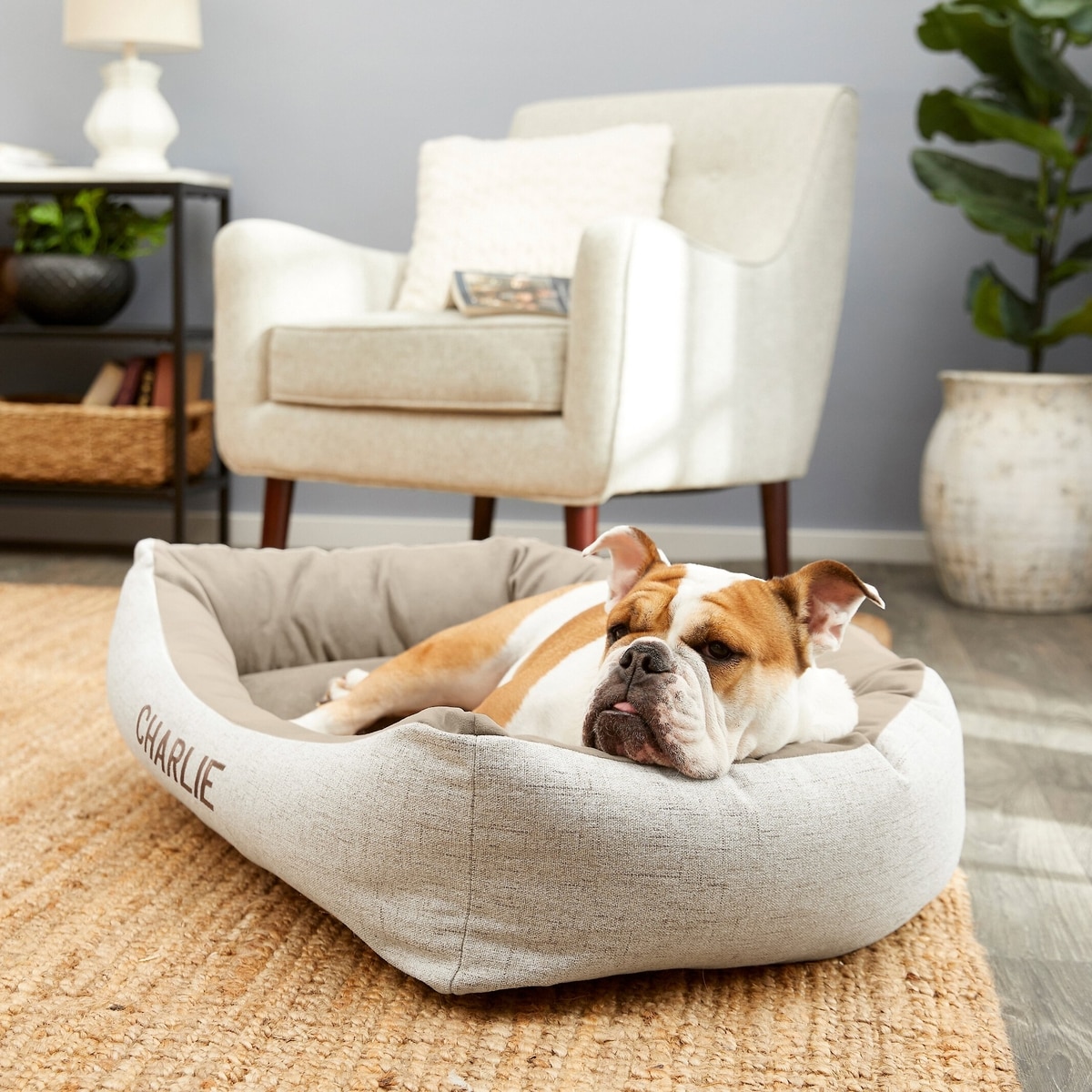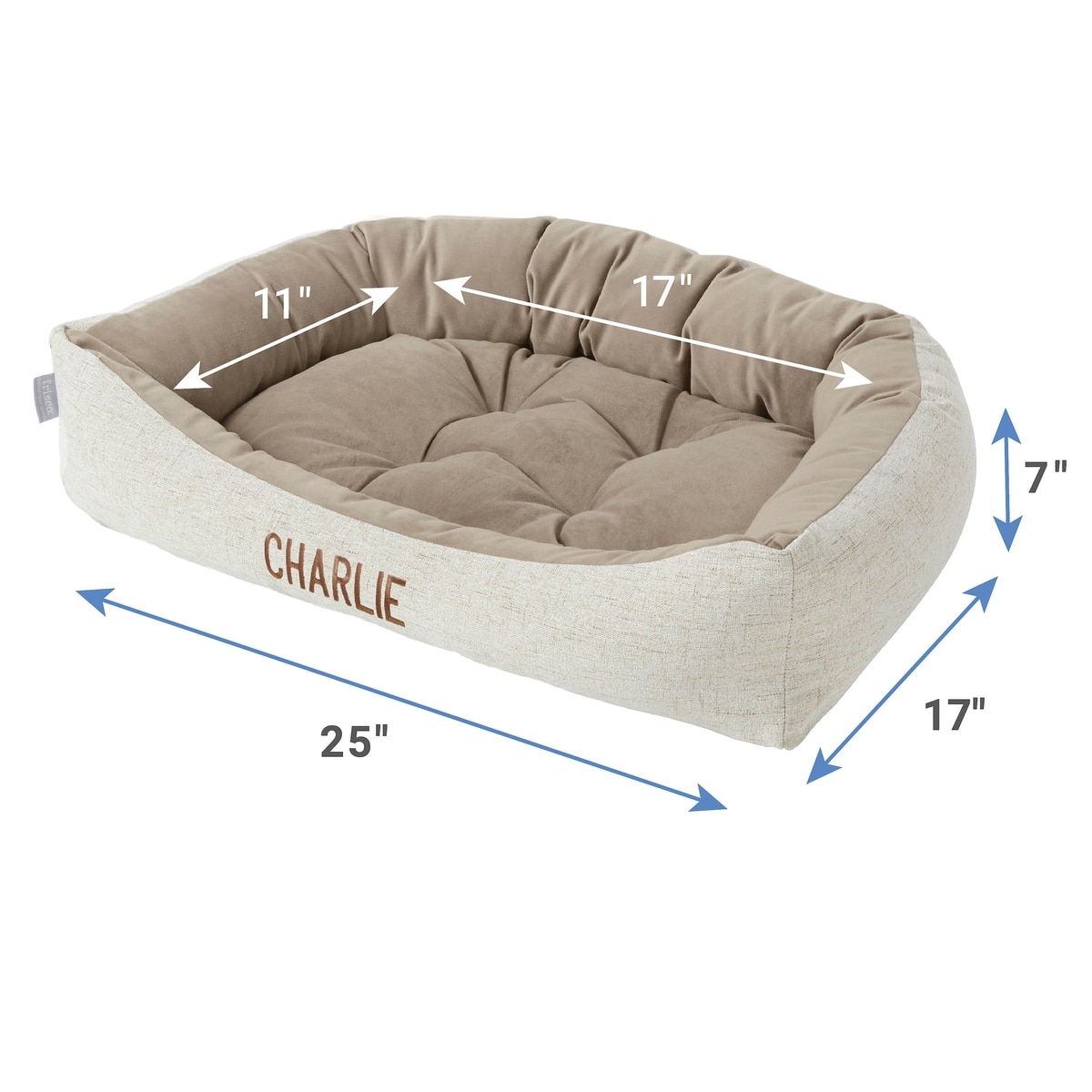 Frisco Rectangular Personalized Bolster Dog Bed w/Removable Cover, Beige, Medium