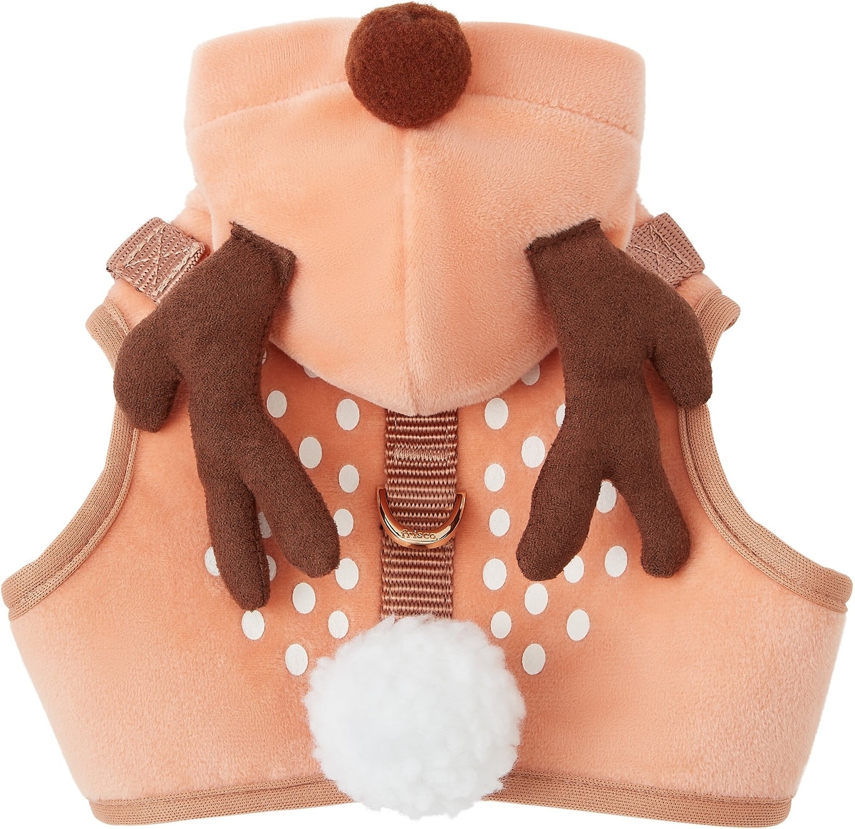 We absolutely adore this soft and fluffy reindeer harness with velcro and adjustable straps. Our dog looks almost like a reindeer, the hoodie with the antlers is