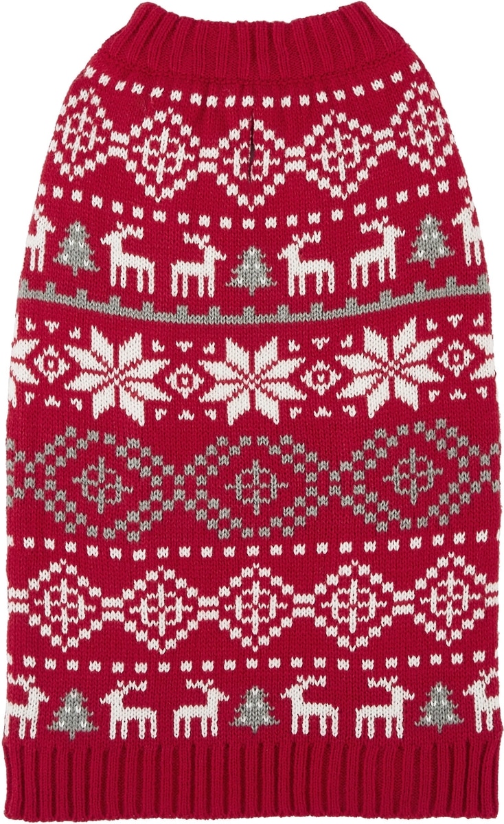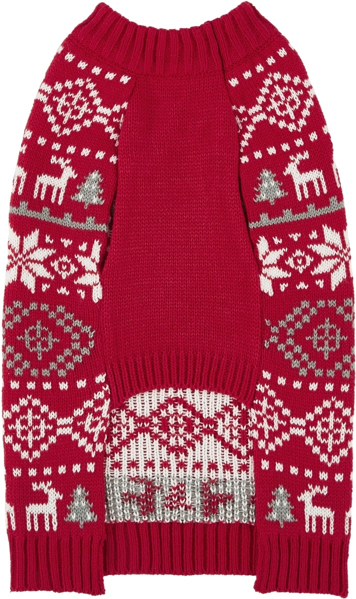- The classic Fair Isle pattern of this pullover pet sweater adds a go-to holiday look to their wardrobe.