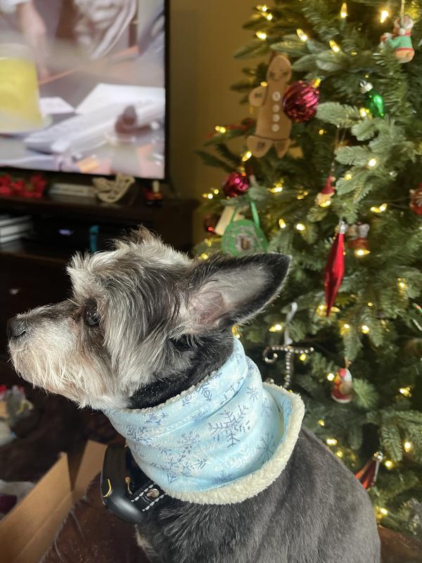Frisco Reversible Snowflake Cozy Knit Faux Fur Dog & Cat Pullover Bandana, 1 count, Medium/Large