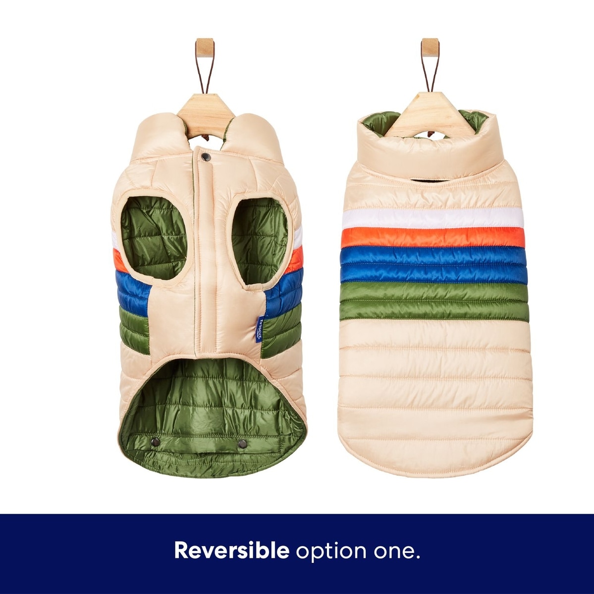 Frisco Lightweight Reversible Striped Packable Dog & Cat Puffer, Cream, XX-Large
