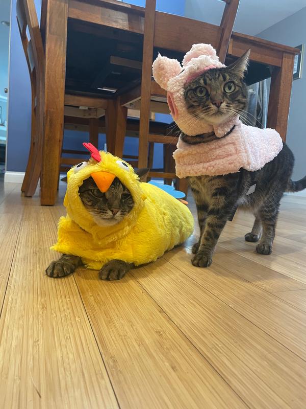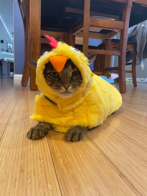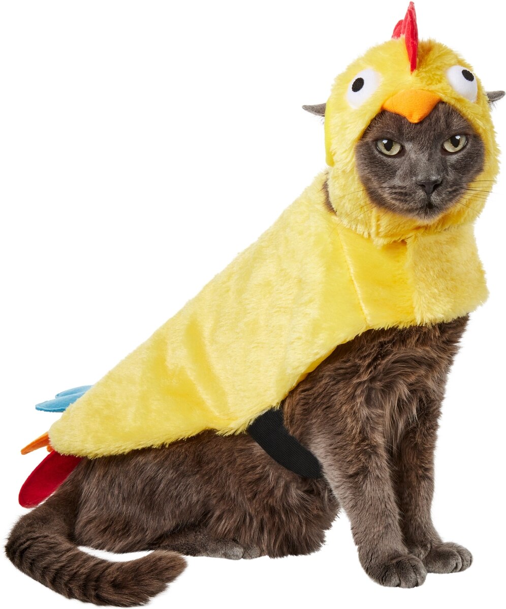 - Features a yellow body with a headpiece that look just like a rooster. Body includes multicolored felt feathers and a look-alike tail. You won’t be able to tell the difference between your pet and the real thing.