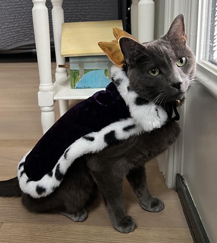 • This cape and crown costume makes your pet the royal highness of Halloween so they can rule the party in stately style.
