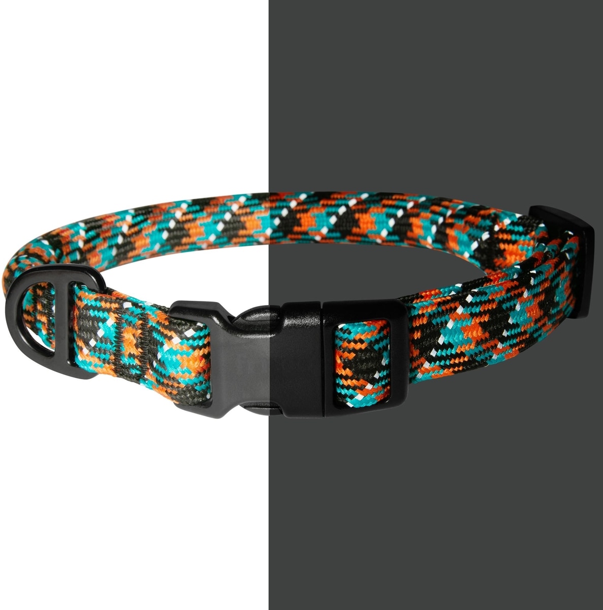 Frisco Rugged Reflective Rope Dog Collar, Black, 16 to 18-in neck, 3/4-in wide