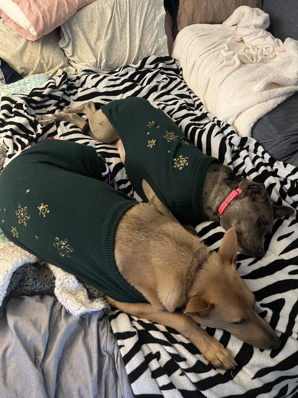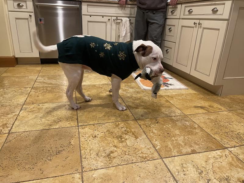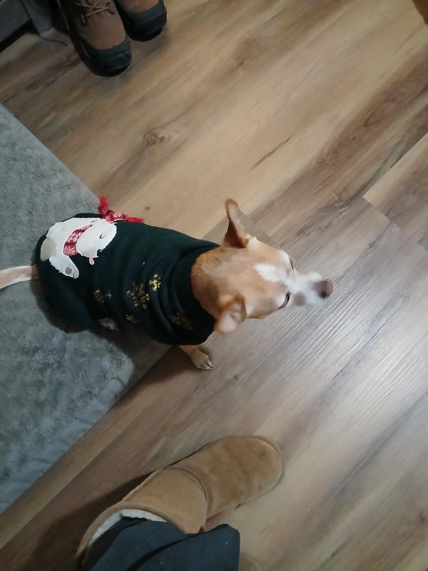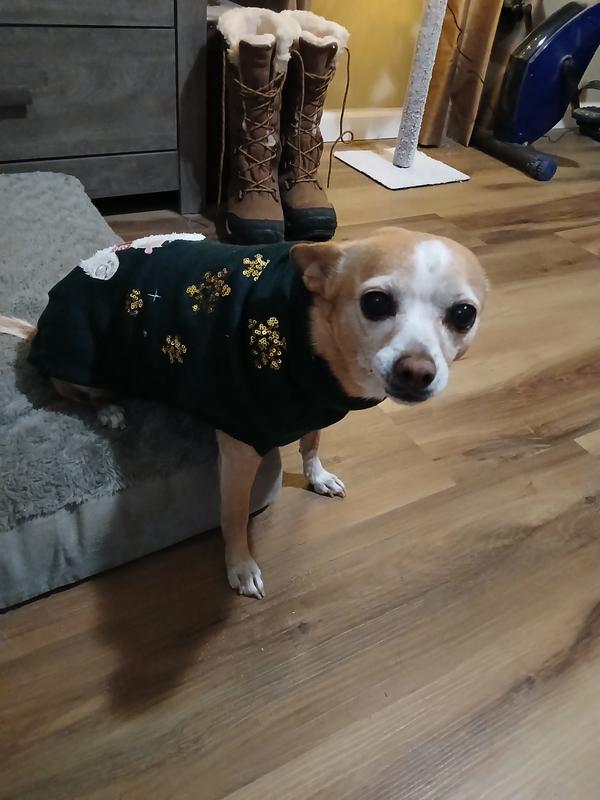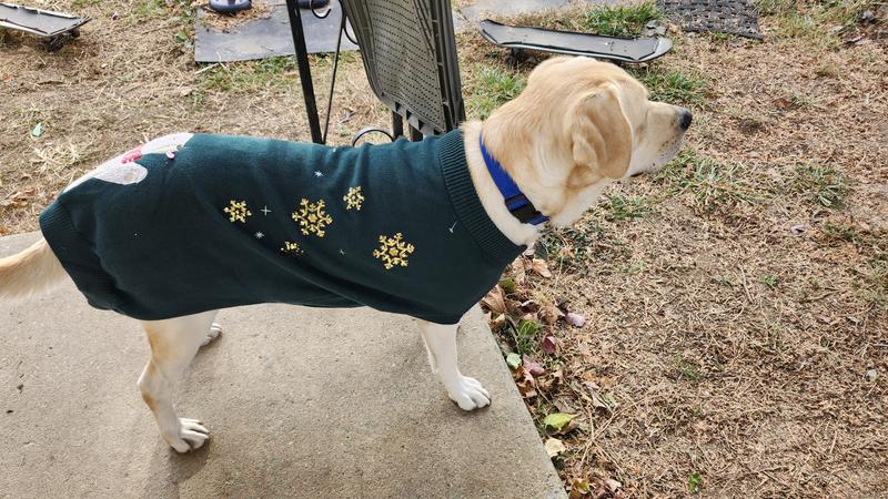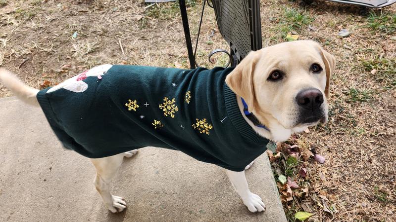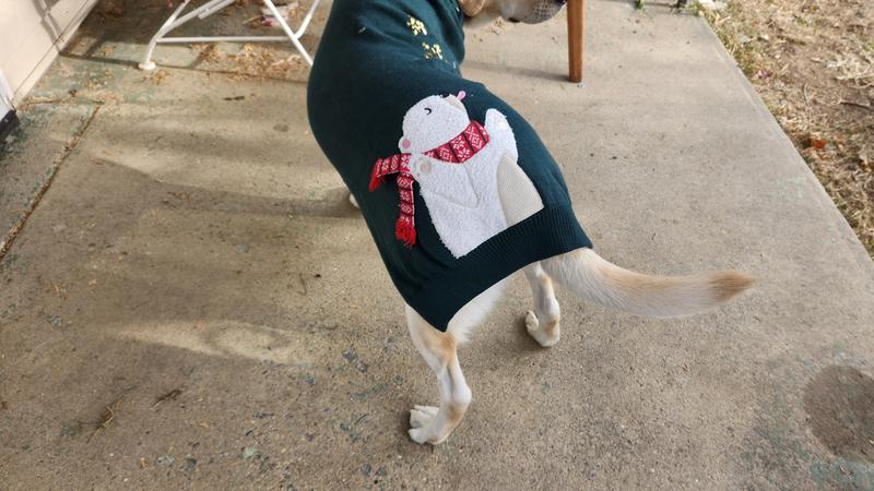 A lot of times I have found that holiday items for pets are cheaply made or don't fit well - not so here! This is an absolutely adorable sweater! My pup even gets a little turtleneck action so it will keep him extra cozy. The knit material is heavy enough to actually be warm for a doggo. And the decor is adorable. I was so excited for my pup to wear it, I let him wear it around the house for a while and the sequins are all in great shape! I am so excited we have this in advance of the holidays - I am sure it will be a big hit with the grandpawrents during the holidays!