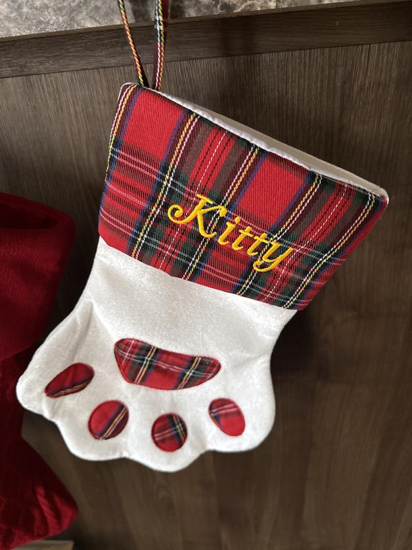 Frisco Christmas Sherpa Plaid Paw Holiday Personalized Dog & Cat Stocking, Red