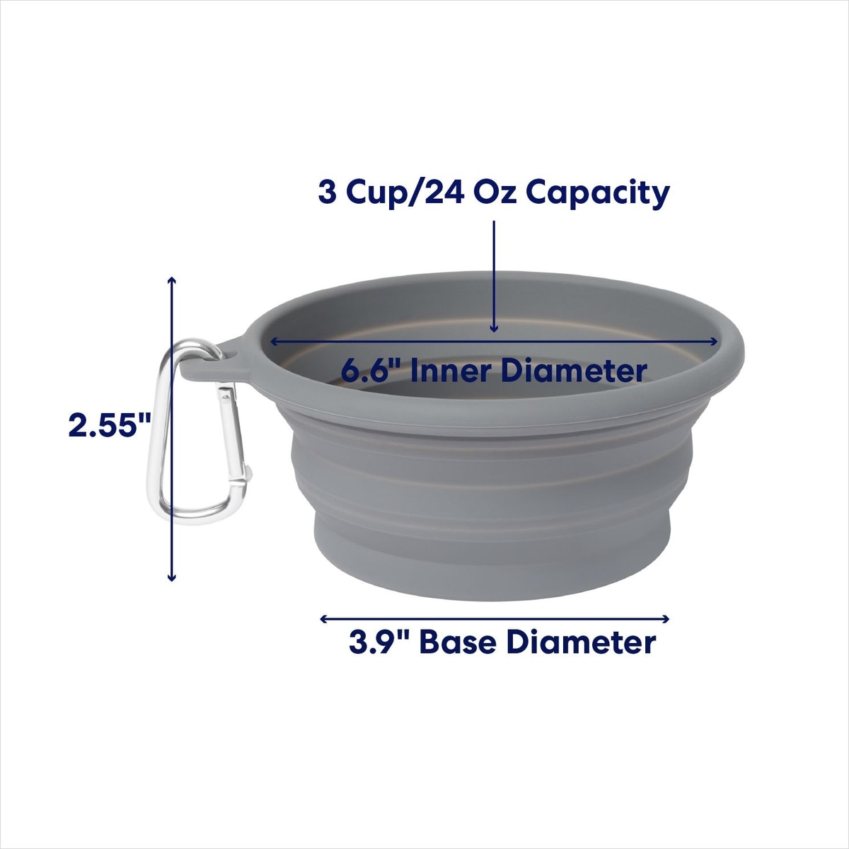 Frisco Silicone Collapsible Travel Bowl with Carabiner, Gray, Medium: 3 cup