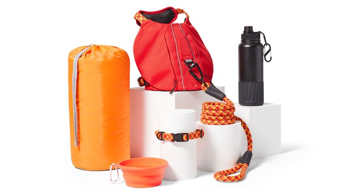 Pitch a makeshift campsite with portable, collapsible bowls and a bottle with separate storage for dry and wet food. It’s easy to keep an eye on your wild one with a bright, high-visibility leash, collar, and harness. When the adventure winds down, the compact travel bed lets them sleep comfortably under the stars.