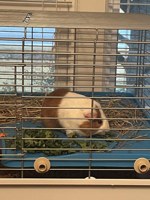 After looking for several months for a suitable cage for my three female guinea pigs, I finally found the perfect cage! It’s huge! It is extremely well built, the metal framing is heavy duty. It has a large double door top opening and a double door side opening. It’s extremely spacious! It arrived extremely quick, all parts accounted for and was very easy to put together. I would highly recommend this cage! I ordered the large size, there are not many cages available for this specific size. The price was extremely reasonable. Everything about this cage is five star. My girls absolutely love it! In my photo, I put fairy lights around the outside perimeter. As you can see from the photo, there is plenty of room for hideouts and tunnels. Plus they have a large kitchen area in the cage. I’ve used numerous cages in the past, including a C&C which most of them are very flimsy and do not have a covered top. It’s the perfect size for three guinea pigs. I opted not to use the platform and ramp, as many guinea pigs do not like to climb. But I will say, the platform is extremely solid and thick. I am so glad I found this cage after months of looking. I cannot say enough good things about this cage!