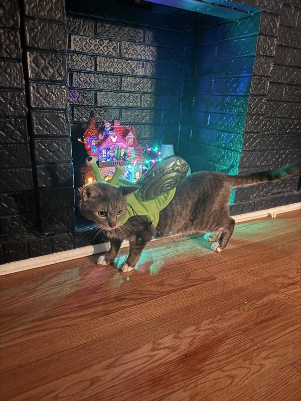 This costume turned Stitch into the coolest snail around! It fit pretty good (just slides around a little bit when he moves around a bunch but that’s totally tolerable, it doesn’t fall off with the Velcro). The isn’t the biggest fan ever of the bungee strings around the ears but he got used to it. Pretty happy with it honestly