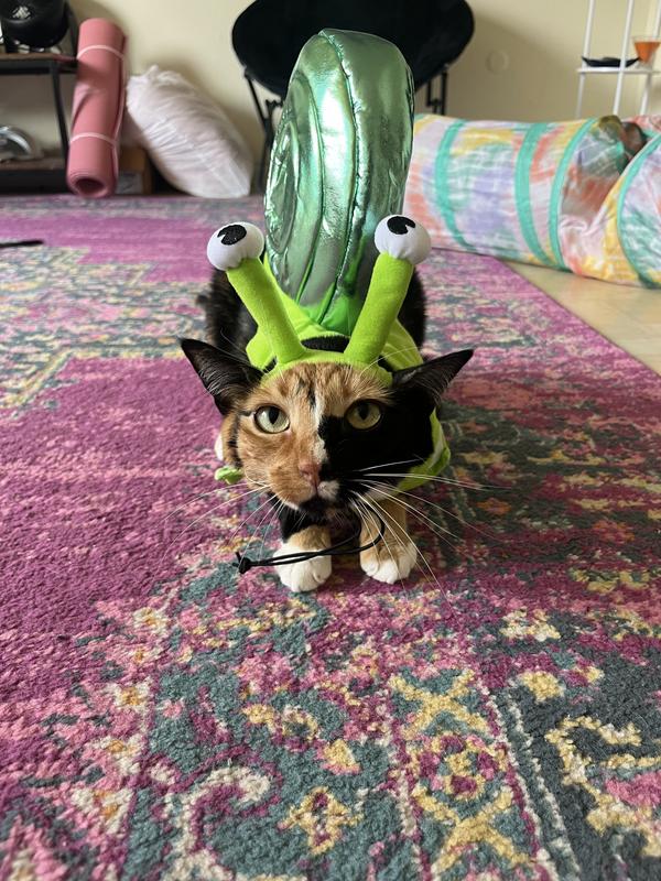 This costume turned Stitch into the coolest snail around! It fit pretty good (just slides around a little bit when he moves around a bunch but that’s totally tolerable,