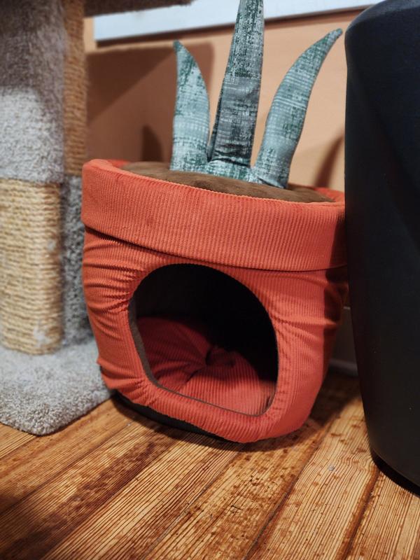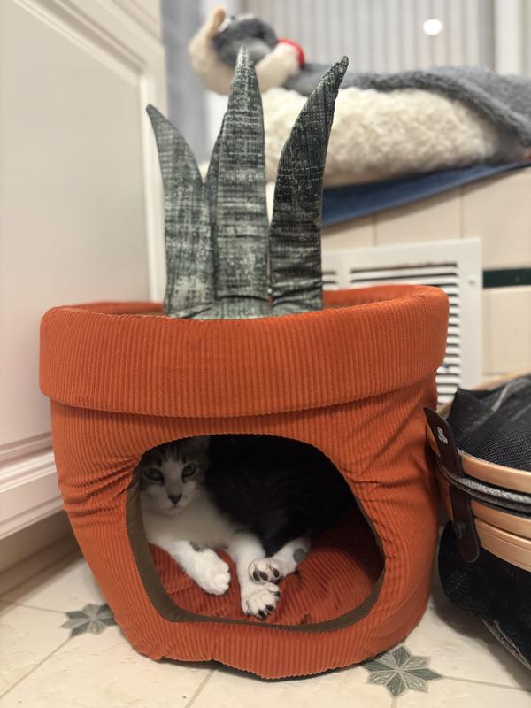 Frisco Snake Plant Covered Cat & Dog Bed with Removable Leaf Toy