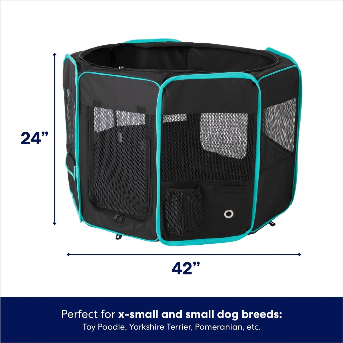 Frisco Soft-Sided Dog, Cat & Small Pet Exercise Playpen, Black/Teal, 42-in L x 42-in W x 24-in H