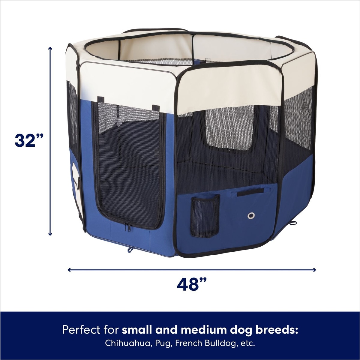 Frisco Soft-Sided Dog, Cat & Small Pet Exercise Playpen, Cream/Navy, 48-in L x 48-in W x 32-in H