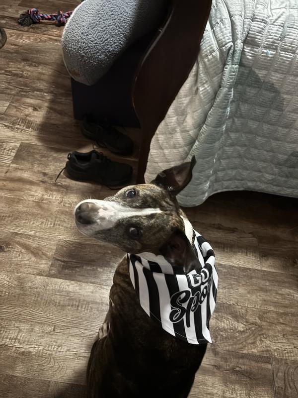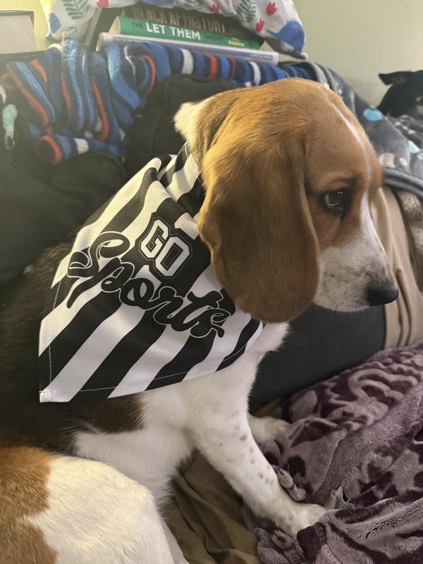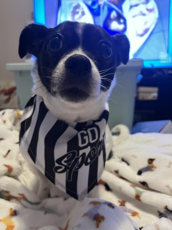 I got this Frisco “Go Sports” referee-style bandana for my pet, and it’s absolutely adorable! The material feels sturdy but still comfortable for my dog to wear. The black-and-white stripe design is bold, and the “Go Sports” lettering is a fun touch—perfect for game day or just a cute photo op. It was easy to put on and didn’t bother my pet at all, which is a huge plus since some outfits can be too fussy. I also love that it’s lightweight, so my pet didn’t overheat or try to tug it off right away. Overall, it’s a simple but super cute accessory that gets lots of compliments. Highly recommend if you want your furry friend to join in on the team spirit!
