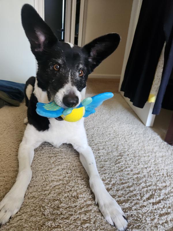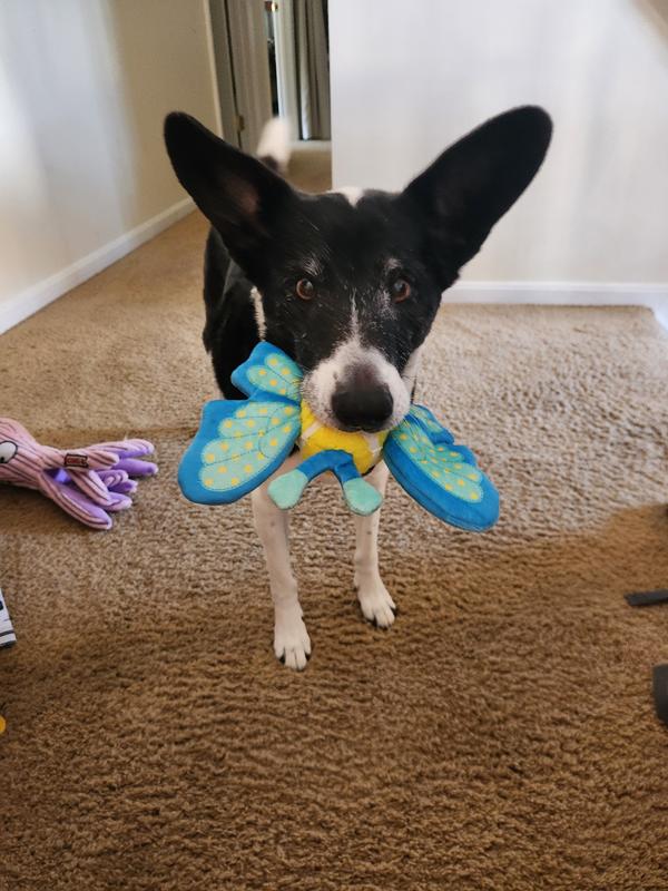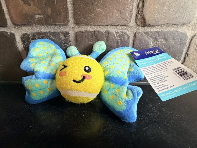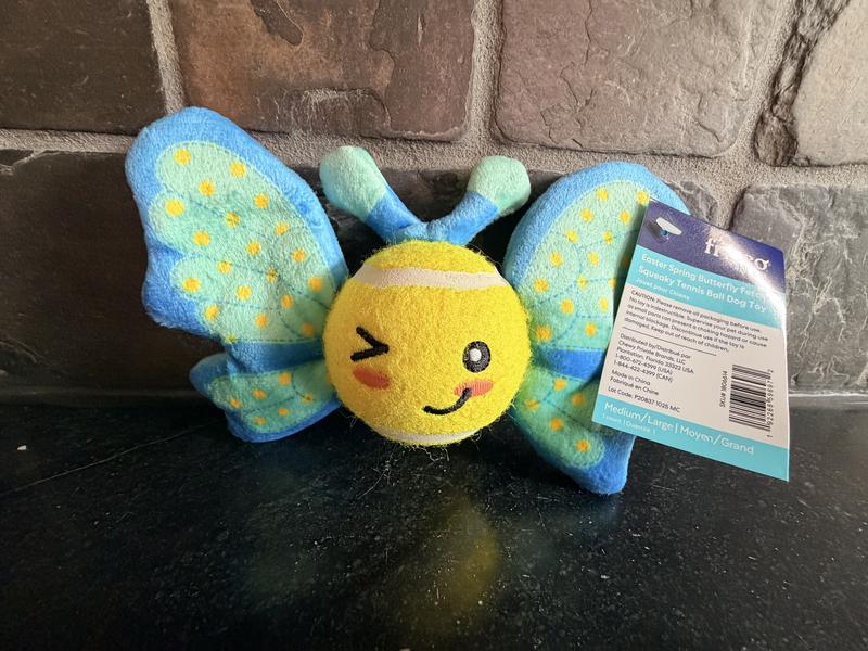 The Frisco Easter Spring Butterfly Fetch Toy is very cute. It's the perfect size for medium dogs and could even be carried around by smaller dogs thanks to the wings