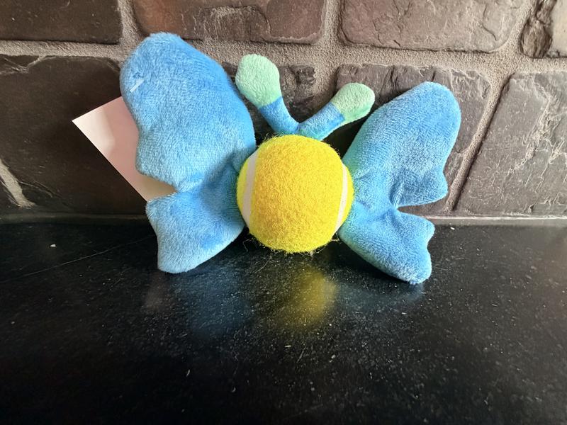 • This butterfly tennis ball toy features soft, intricate butterfly wings and a pair of plush antennae to get your dog psyched for playtime tossing, fetching, and chasing.