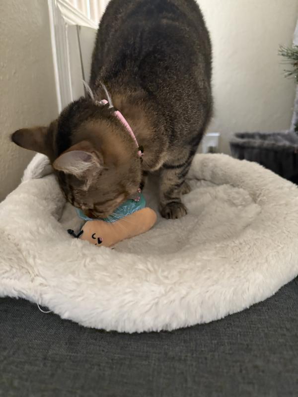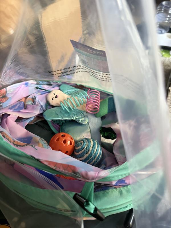 It’s a HIT! Our cats LOVED the tunnel! One loves to sleep in it and the other loves to play – hard! He loves the wand with a toy attached and we have spent a lot of time playing already! And then there are the SPRINGS! They are a fun pastel color, and they are the number one cat toy in our house. Some of the catnip toys are crinkly - some are balls and some are critters - they are all so adorable - especially the snail! I would 100% recommend this!!!