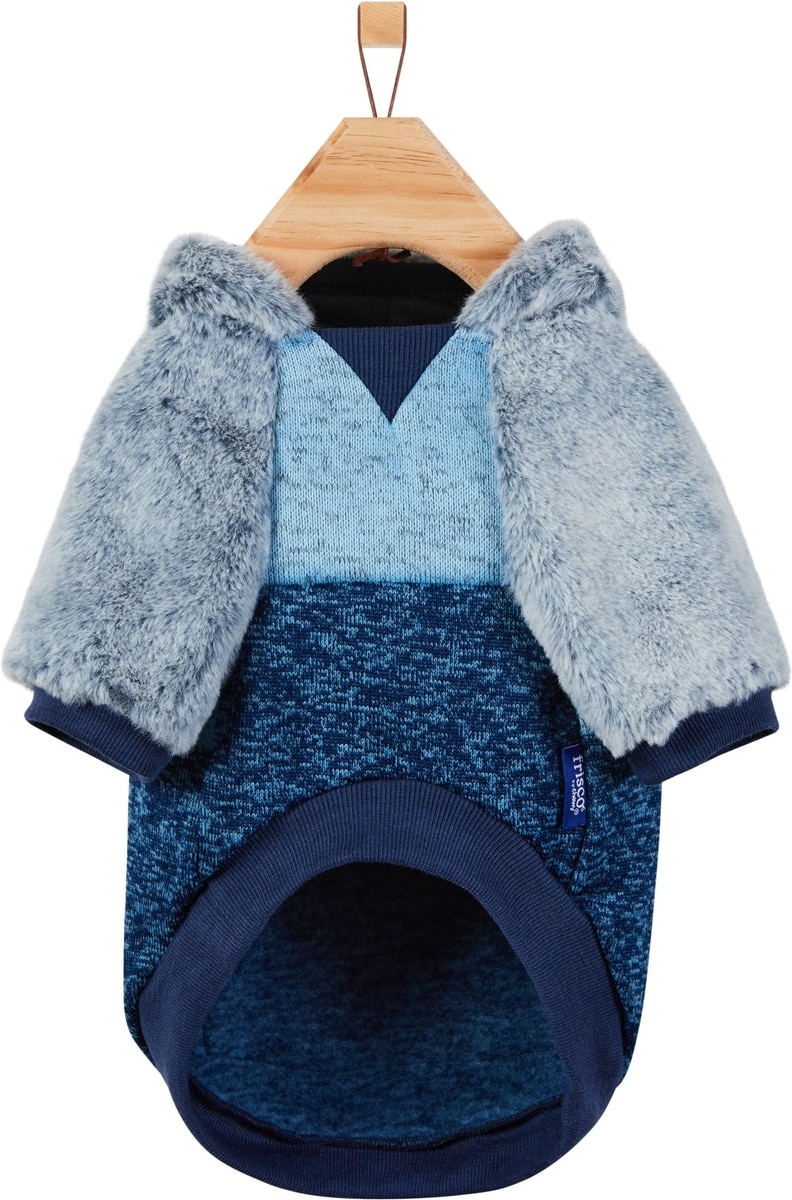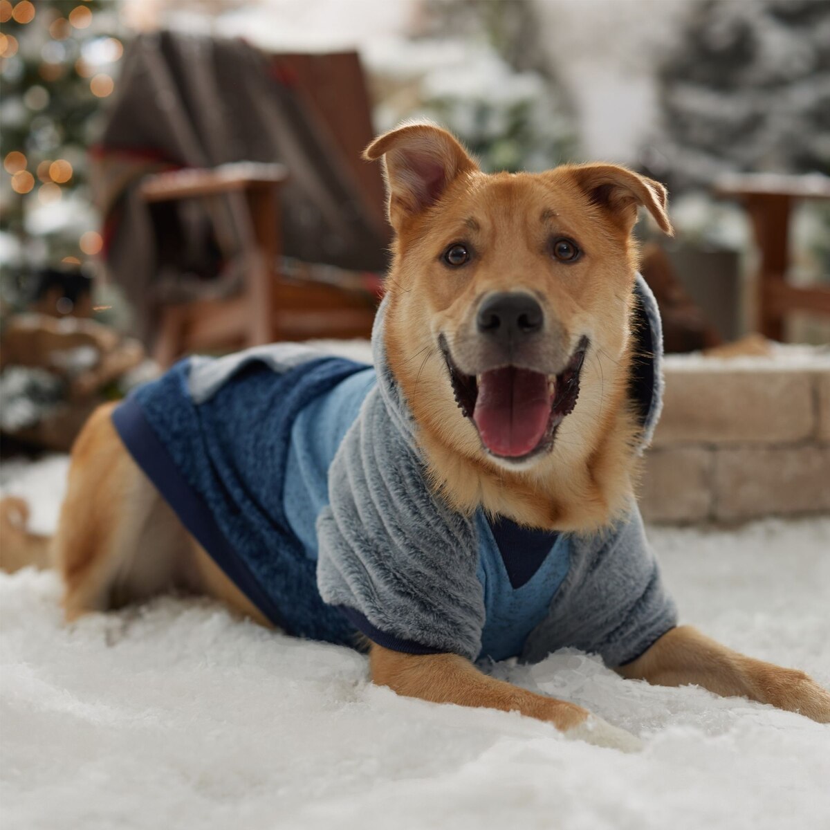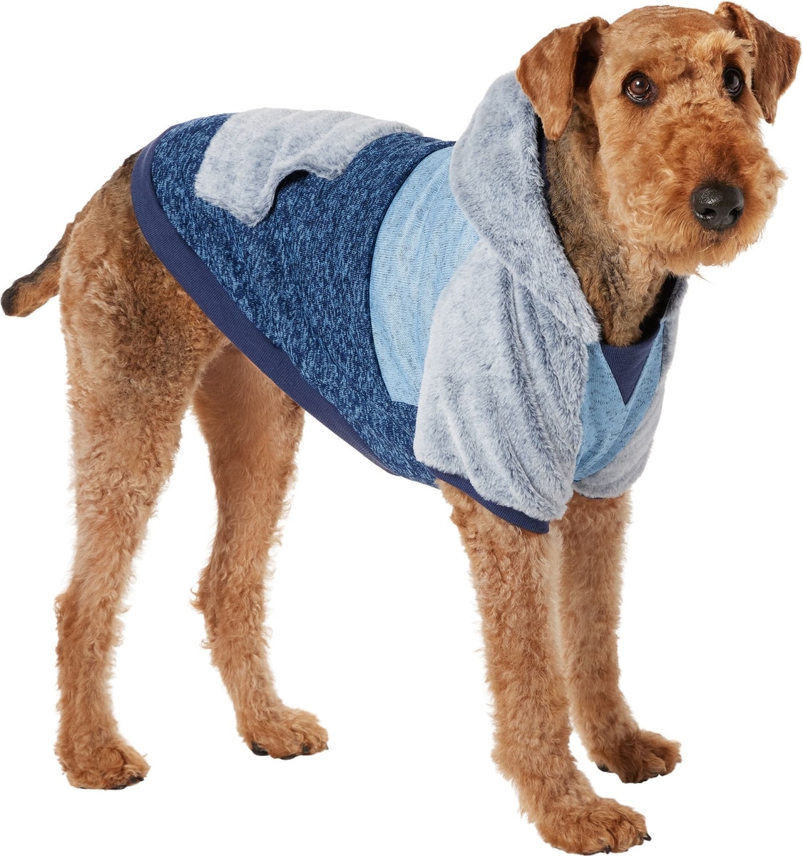 Frisco Tonal Colorblock Fleece Dog & Cat Hoodie with Faux Fur Hood, XX-Large