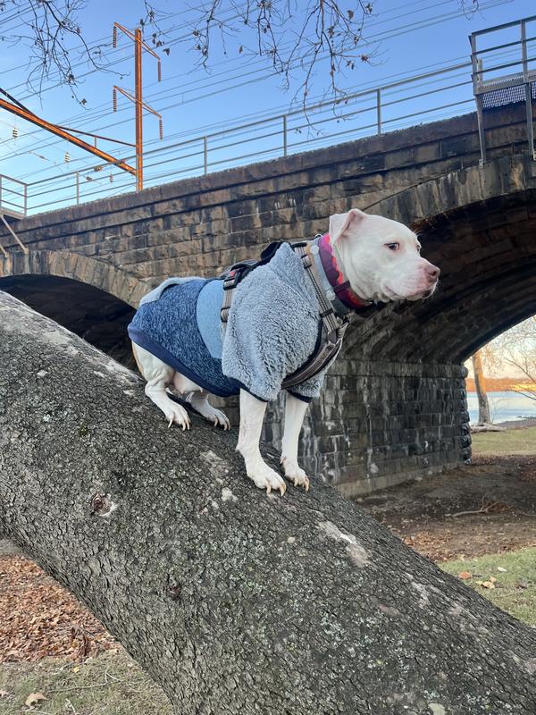 We have an older dog who needed a warmer every day sweater for the winter. He is a medium size. spaniel who has a larger chest. We got the XL and it fit well. It has lasted very well in our everyday use and still super soft and warm, without seeming to bother him at all.