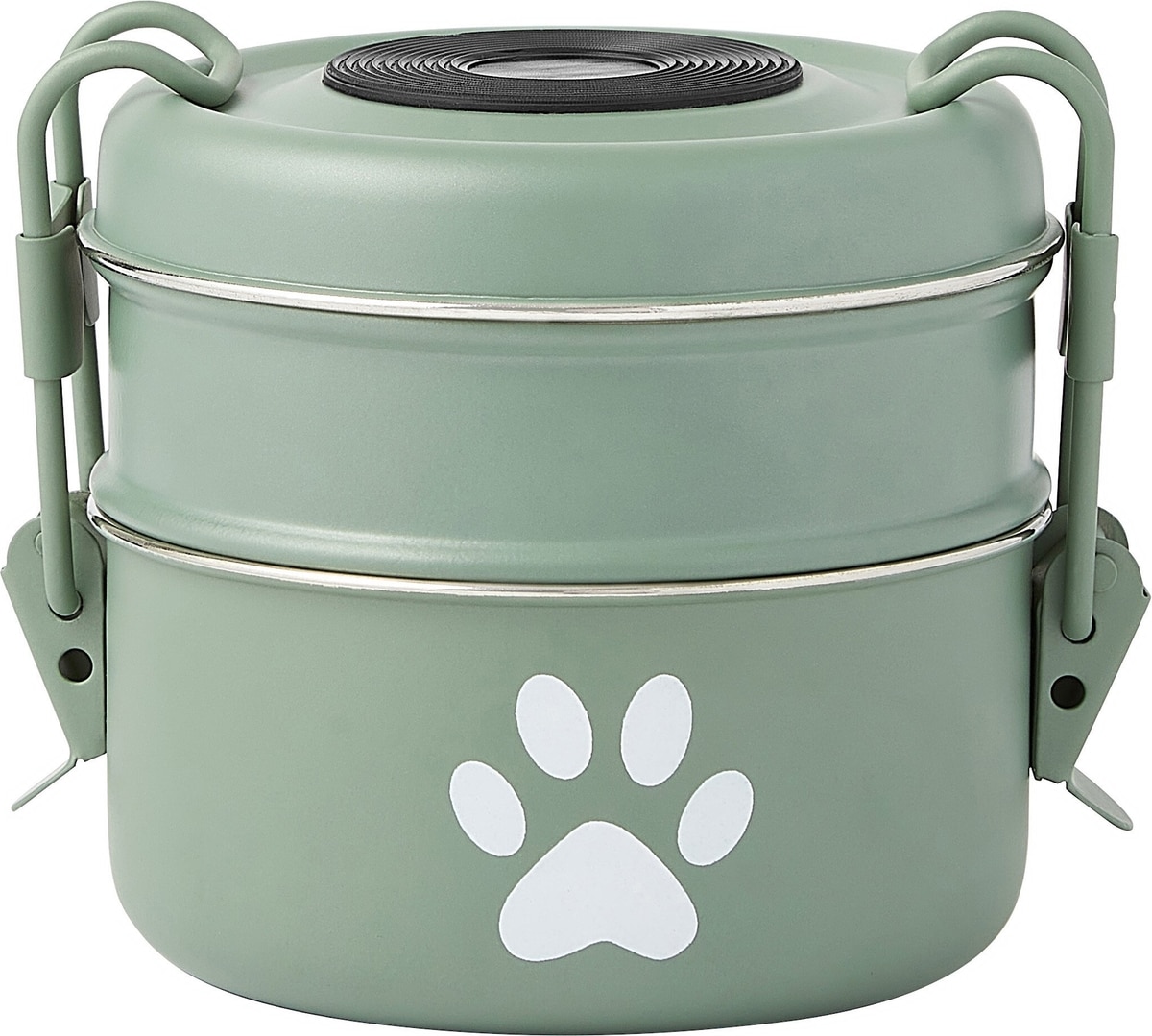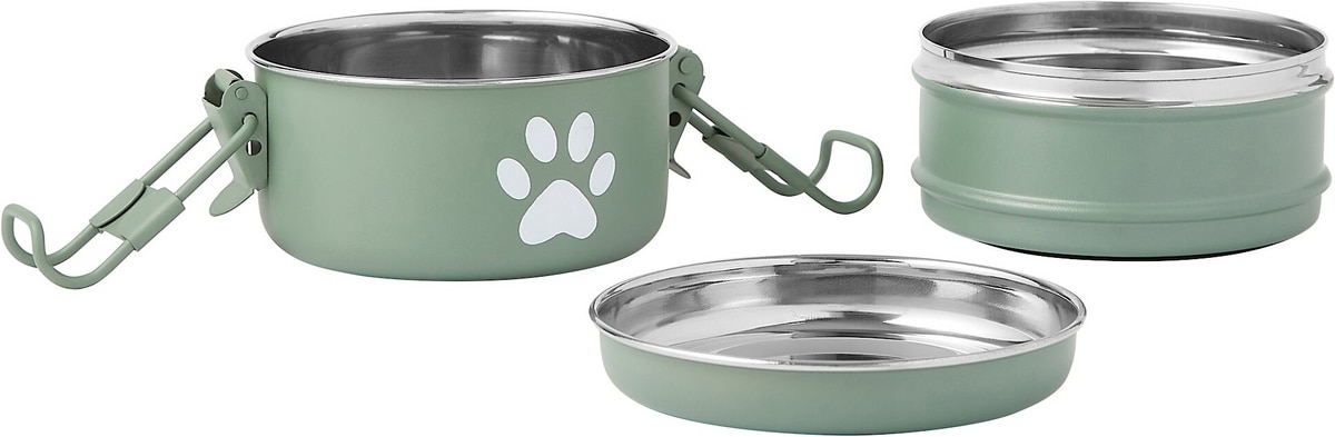 Frisco Complete Travel Stainless Steel Dog & Cat Feeder Bowl, Artichoke Green, Small