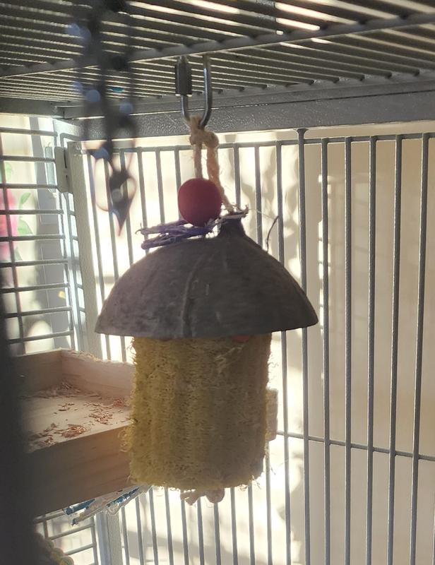 It's really cute and has great reviews. Well made, fun assortment of materials to chew up, heavy duty caique proof clip. But my bird didn't seem very intereste