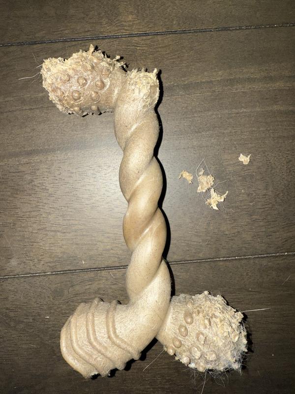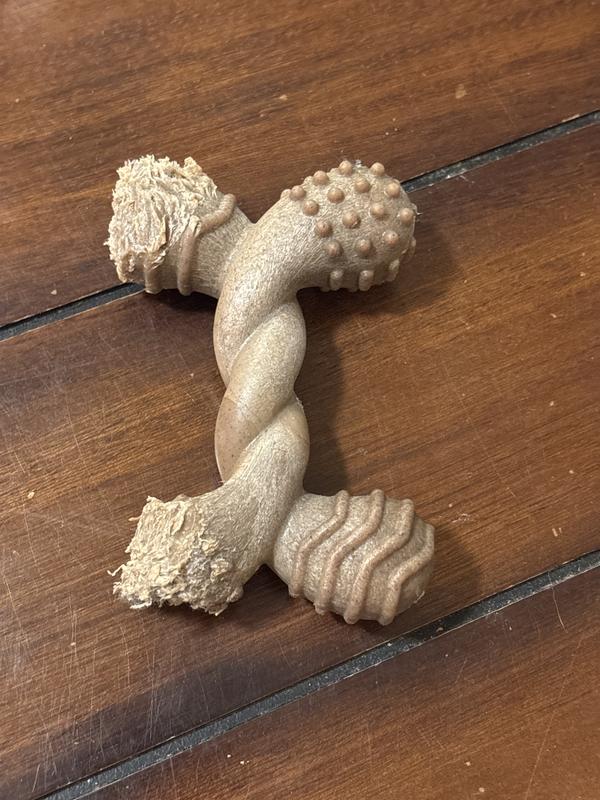 Chew toys feature a variety of beneficial designs including a proprietary, non-toxic, BPA-free, real wood-blended nylon that’s gentle on teeth, as well as ergonomic shapes with highly textured surfaces to help to clean your dog’s teeth as they chew.